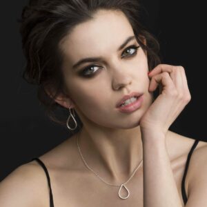 Delikate og feminine øredobber formet som hengende dråper. Også denne ørepynten har kontrasten av blank overflate og matte sidekanter. Festet på ørekroker får dråpene en fin bevegelse hengende på øret.